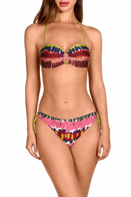 Copas y aros, atado al cuello y posibilidad de usar como bandó, detalle a tono, braga lazo corredero.