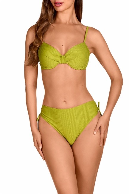Copas y aros, tirantes regulables, braga de lazo corredero fruncido.