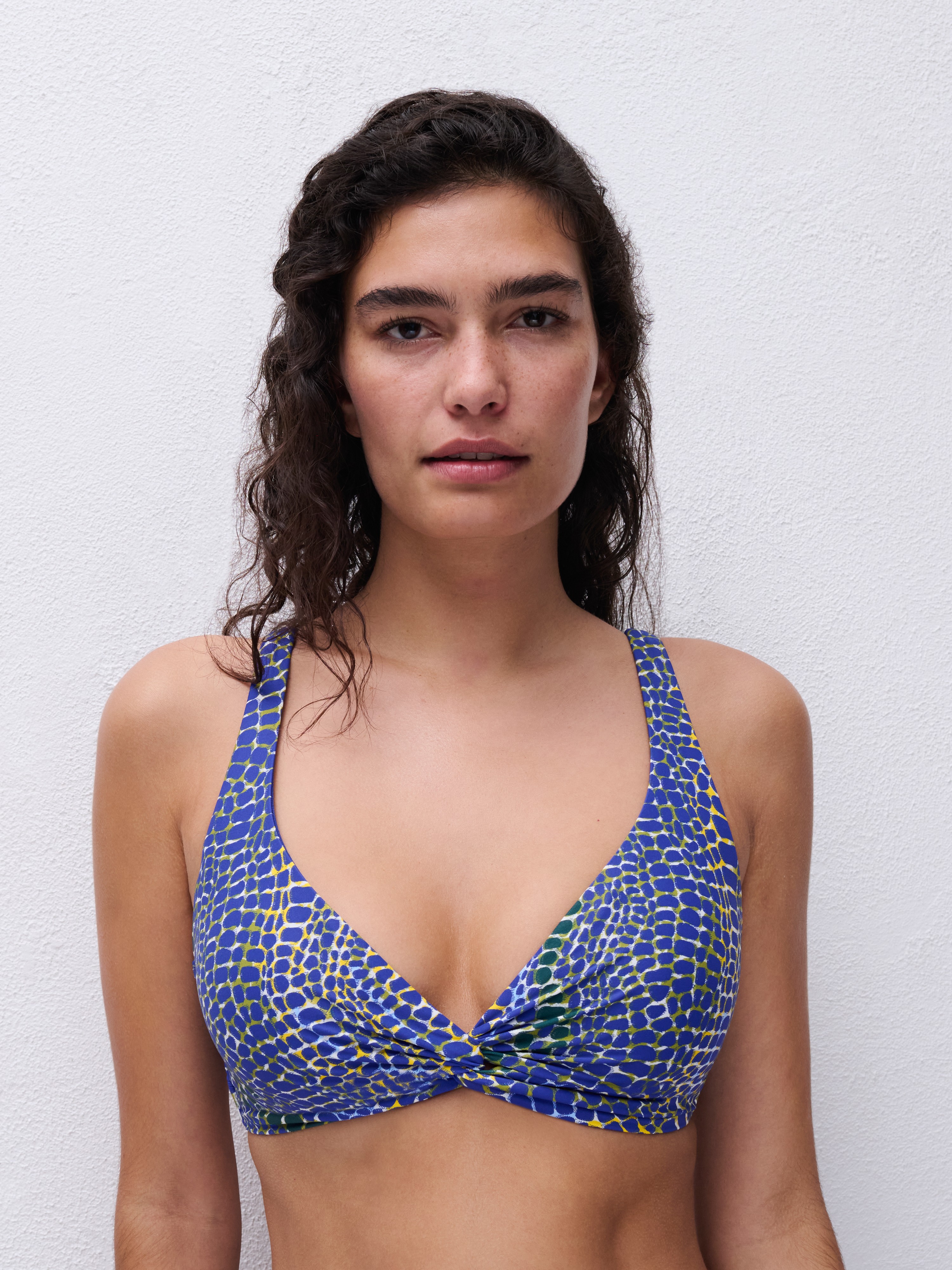 Top de bikini cruzado sin aros y con foam muy fino, tirantes que podrás llevar rectos, cruzados o al cuello.