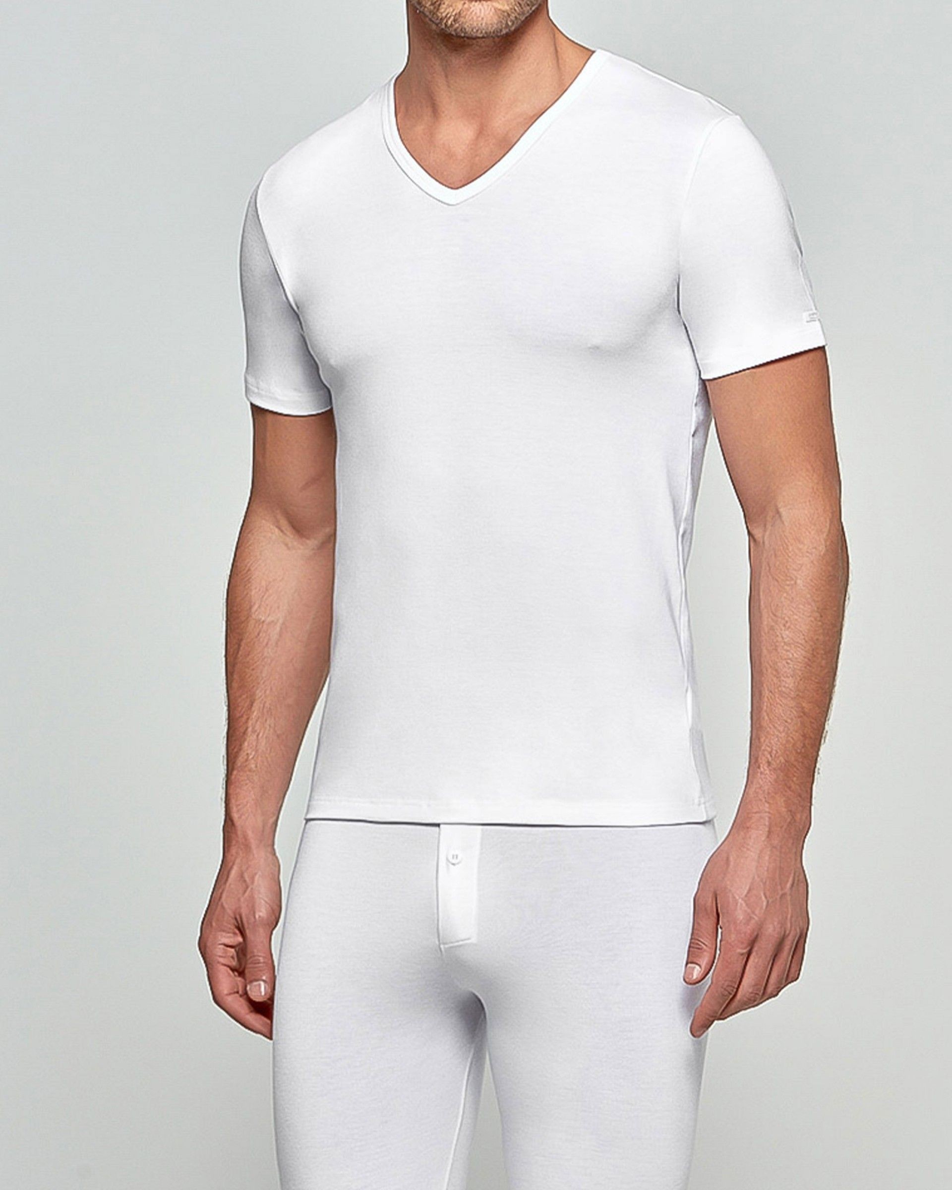 Camiseta para hombre de algodón, elástica, de manga corta y cuello pico.