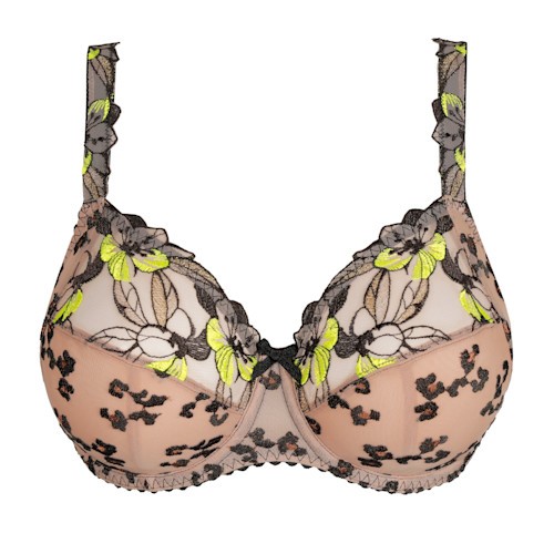 Sujetador con aros de gran capaciadad, sin foam y muy cómodo, diseño vanguardista y elegante, Wild Bloom es una potente mezcla de negro y amarillo neón con un divertido estampado de leopardo.