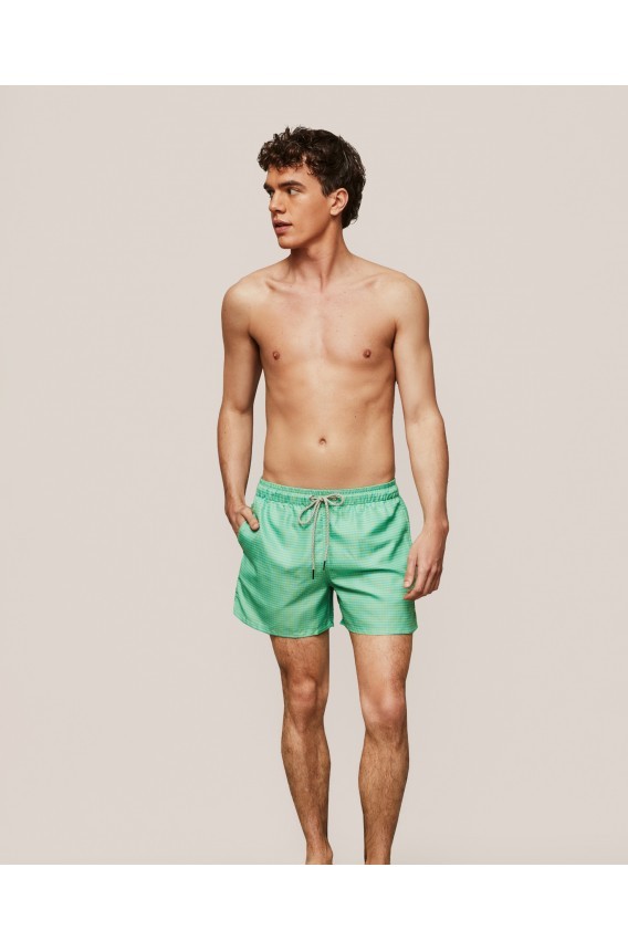 Bañador de chico verde y azul con dibujo vichy .