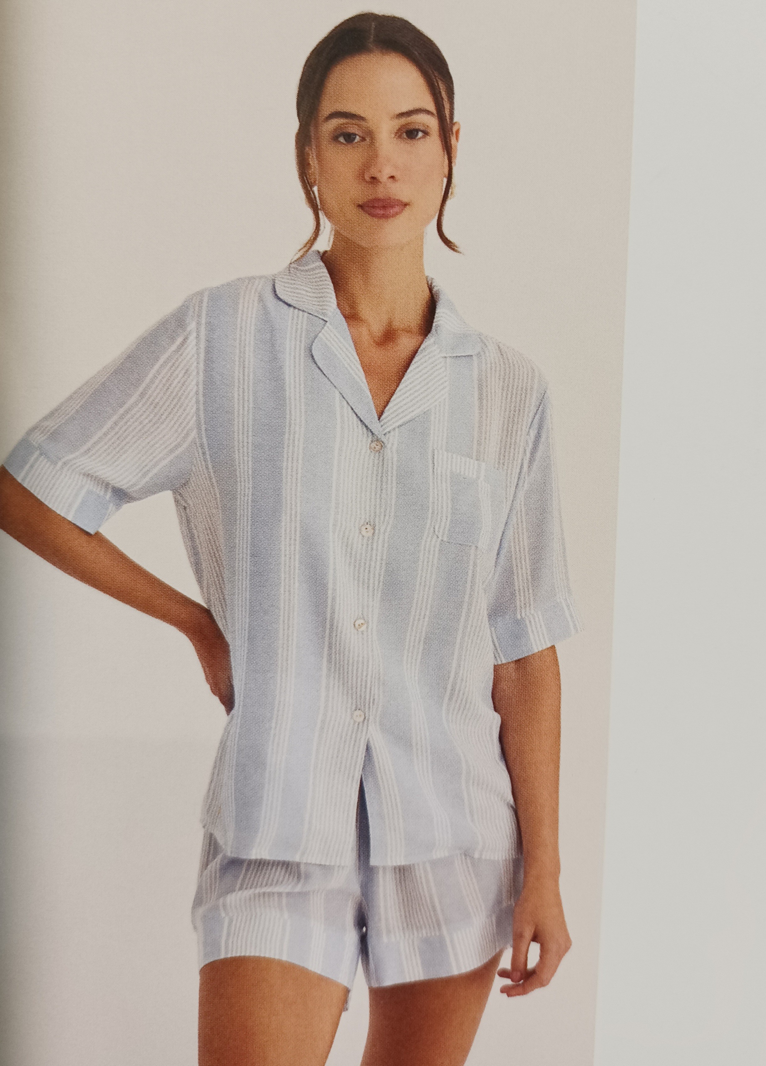 Pijama lencero 100% viscosa para mujer, manga corta, solapa y botones, pantalón corto con cintura elástica.