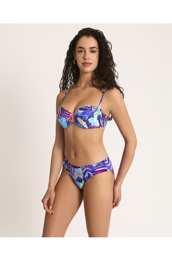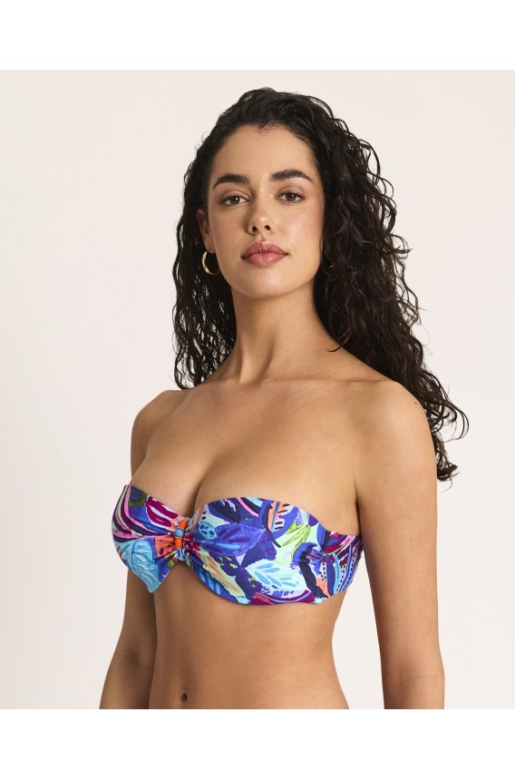 Top de bikini bandó con aros y foam, tirantes de quita y pon.