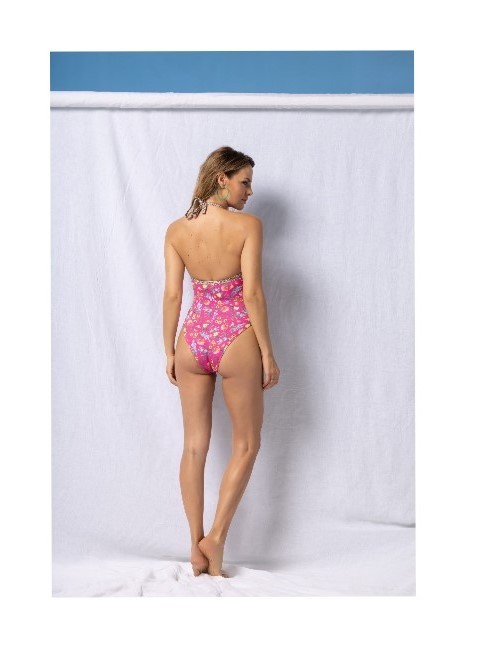 Una cara es verde lima con estampado de flores muy vistosas, y la otra cara contrasta con un print leopardo muy elegante, ambas caras son muy favorecedoras, tejido muy suave, 87% poliéster, 13% elastano.