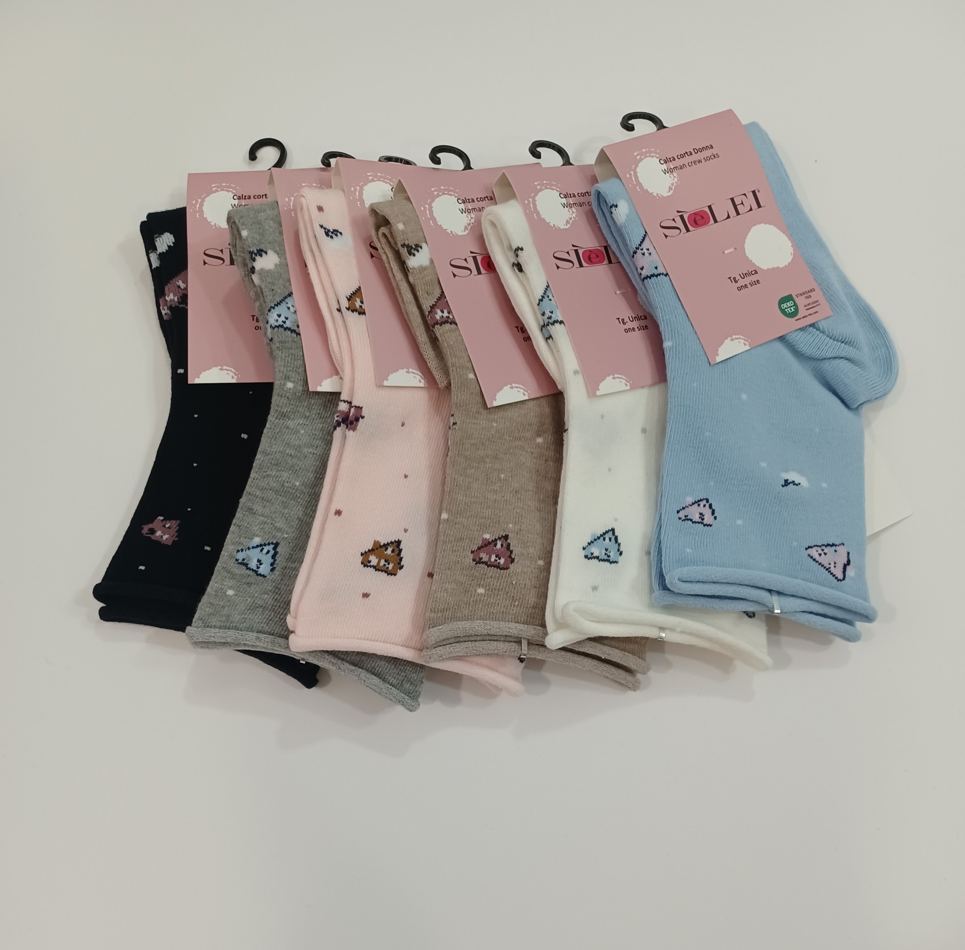 Calcetín de algodón con puño rulo y motivos de casas otoñales.