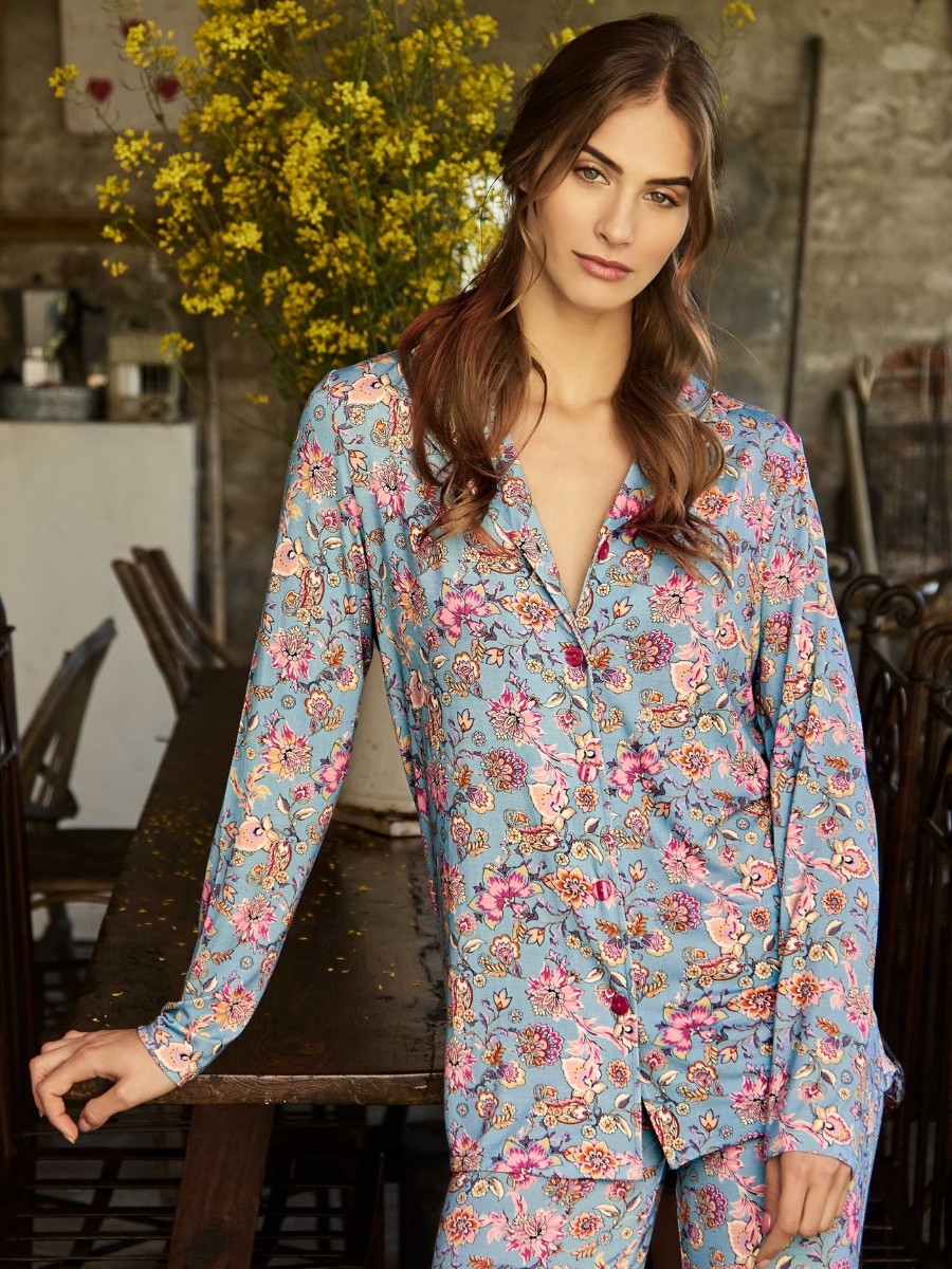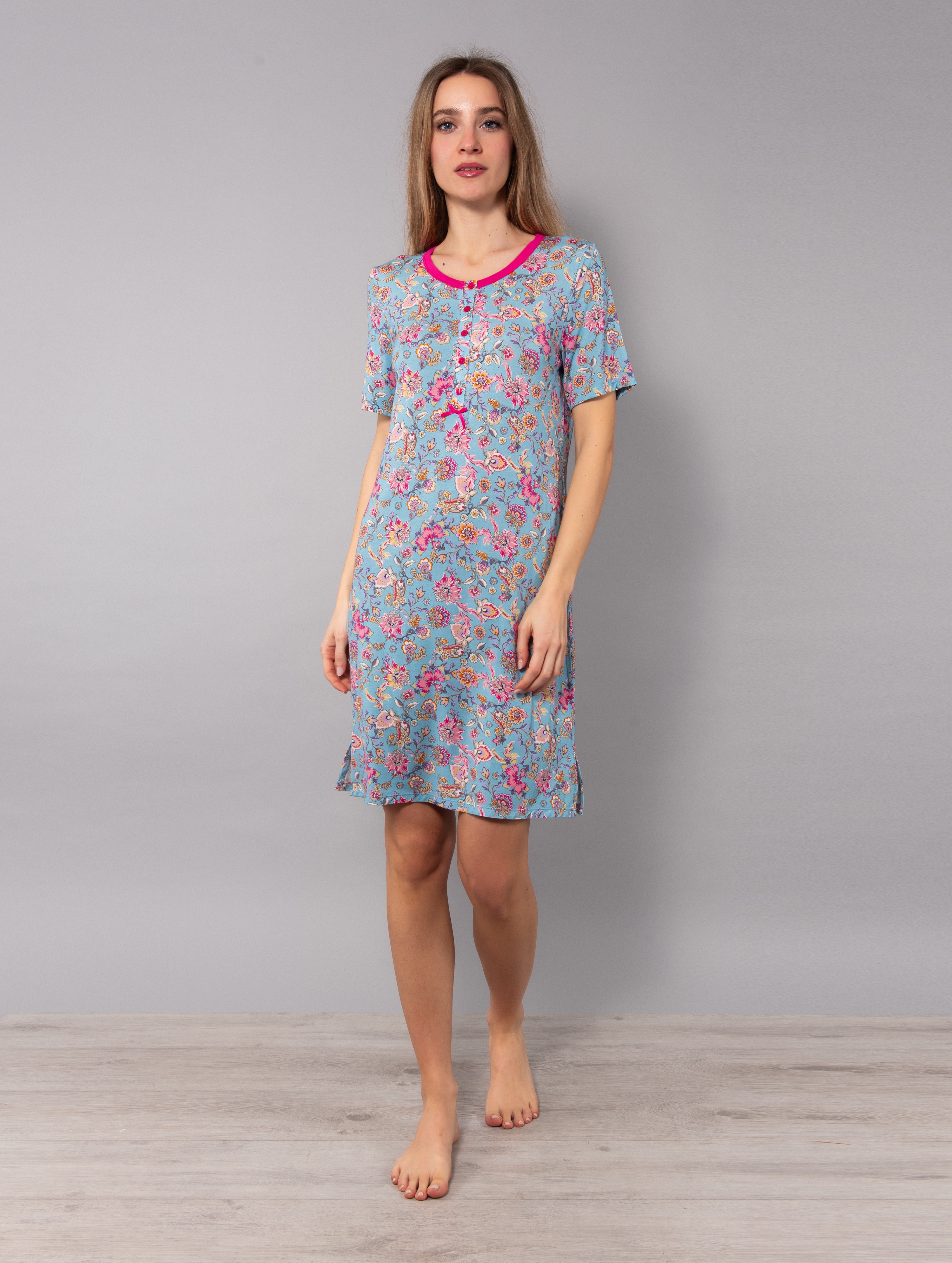 Precioso camisón ligero y elástico en color azul con flores.